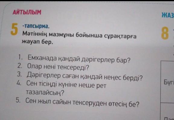 Емханада барлық дәрігерлер бар,мысалы:тіс емдейтін дәрігер,лор,