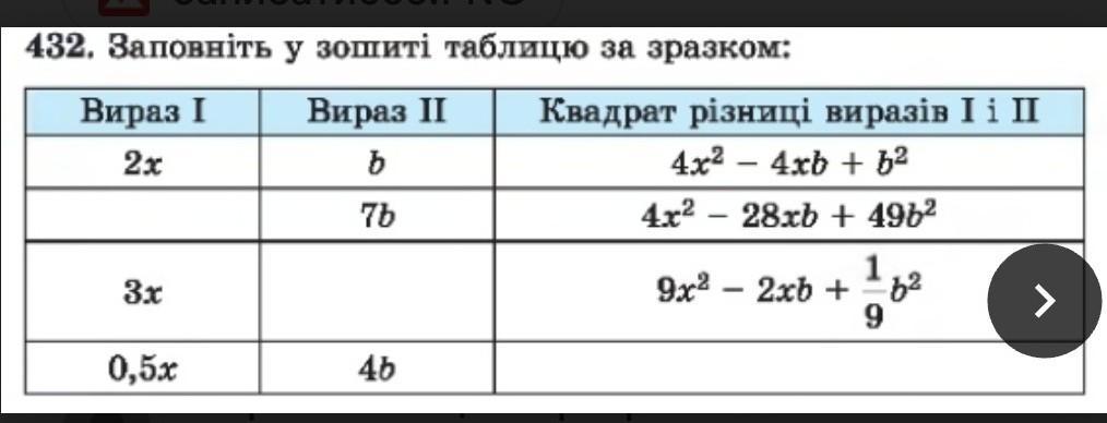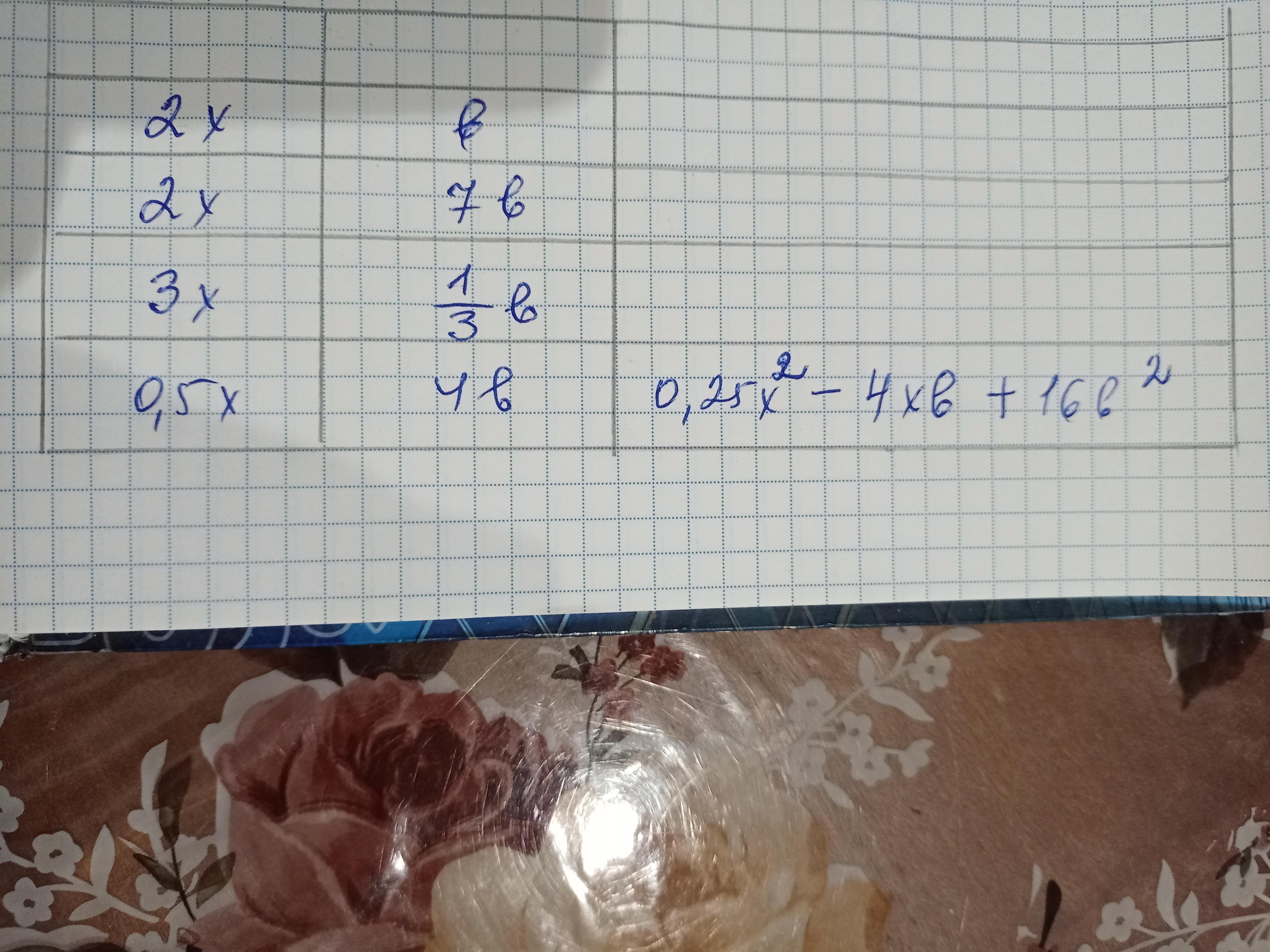 1) (2х)² - 2*(2х)*(7в) + (7в)²=(2х - 7в)² в 1 клетке 2х.