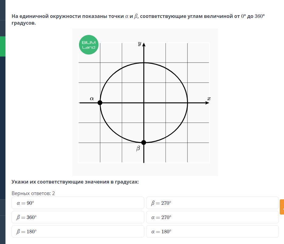 на единичной окружности показаны точки а и в , соответствующие углам величиной от 0 до 360 градусов