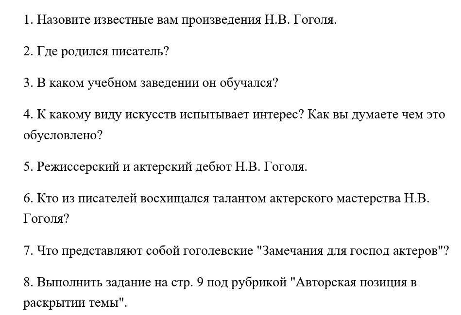 1)Мёртвые души ,Ревизор ,Женитьба, Театральный разъезд ,Вечера на хуторе близ Диканьки ,Миргород ,Вий,