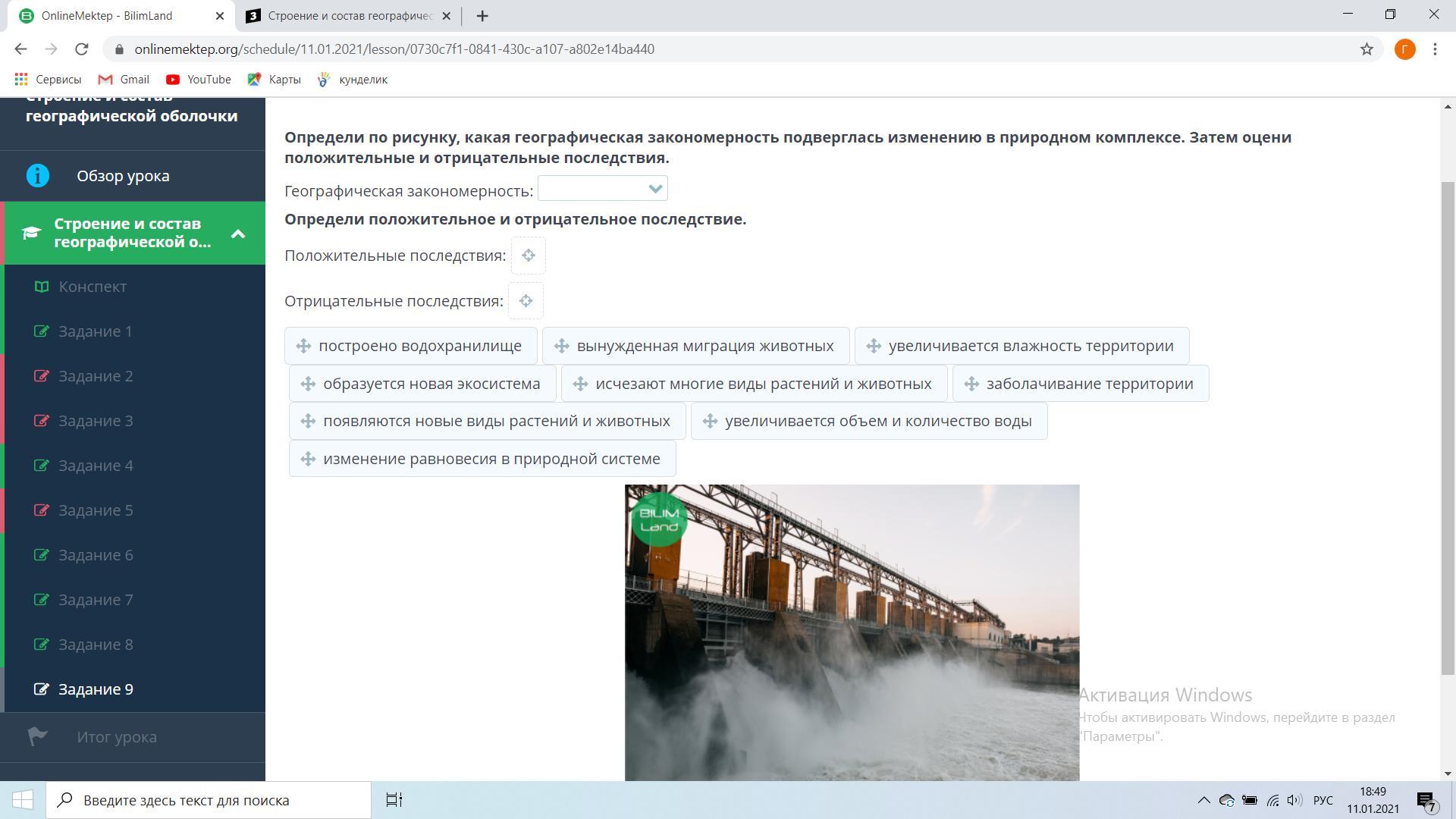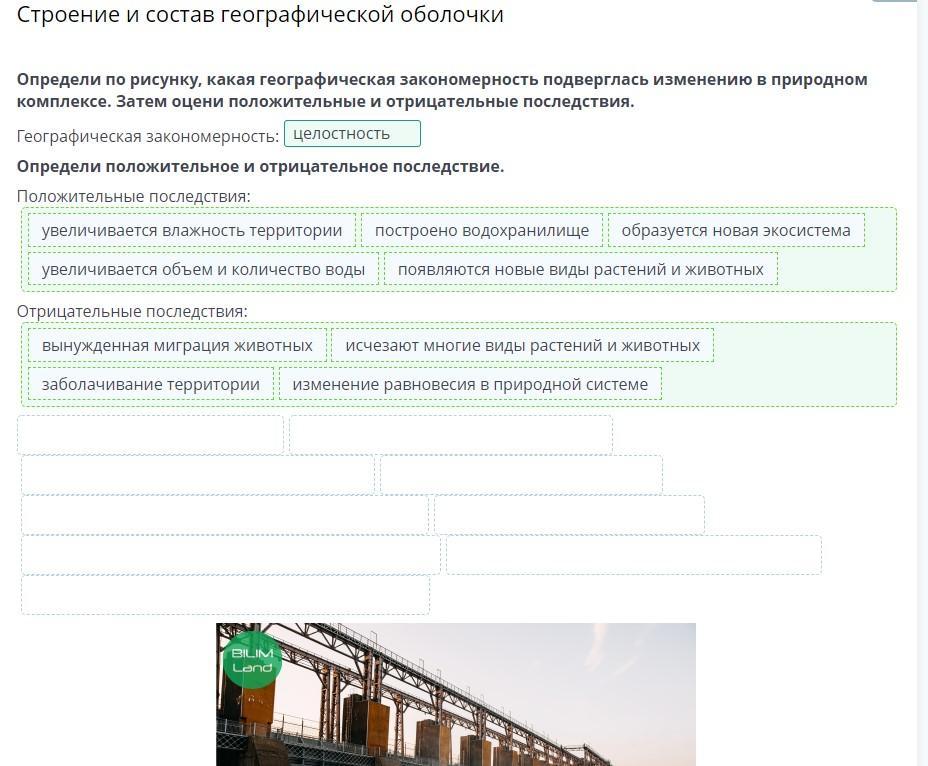 Определи по рисунку, какая географическая закономерность подверглась изменению в природном комплексе. Затем оцени положительные и отрицательные последствия.
