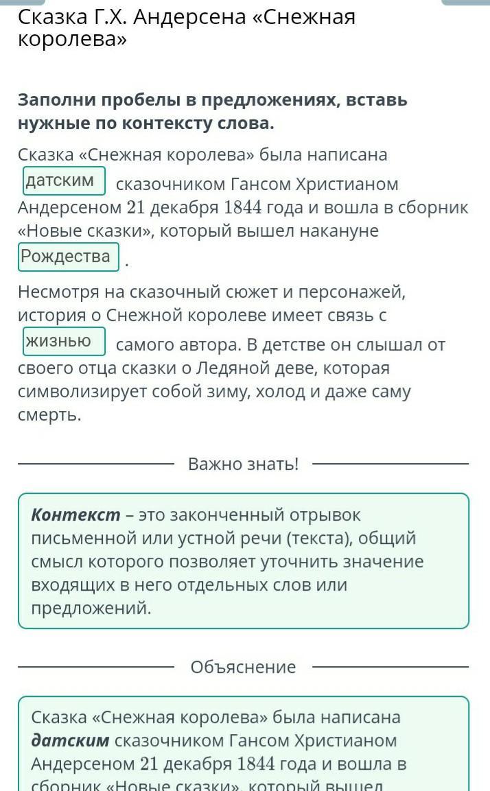 Заполни пробелы в предложениях, вставь нужные по контексту слова.