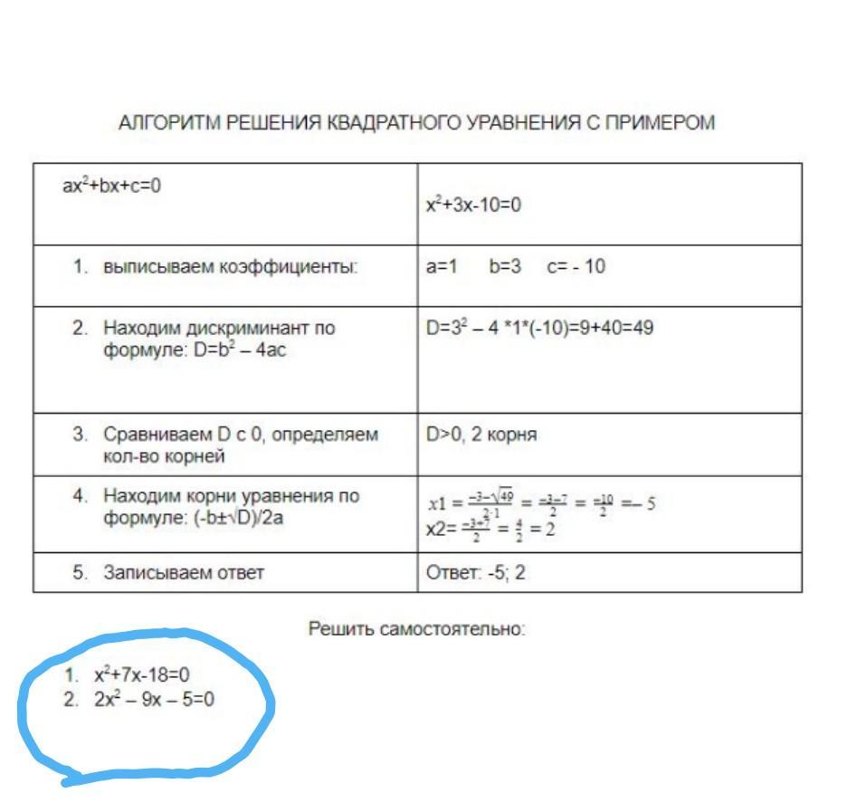 D = 7² – 4·1·(–18) = 49 + 72 = 121 > 0, два корня