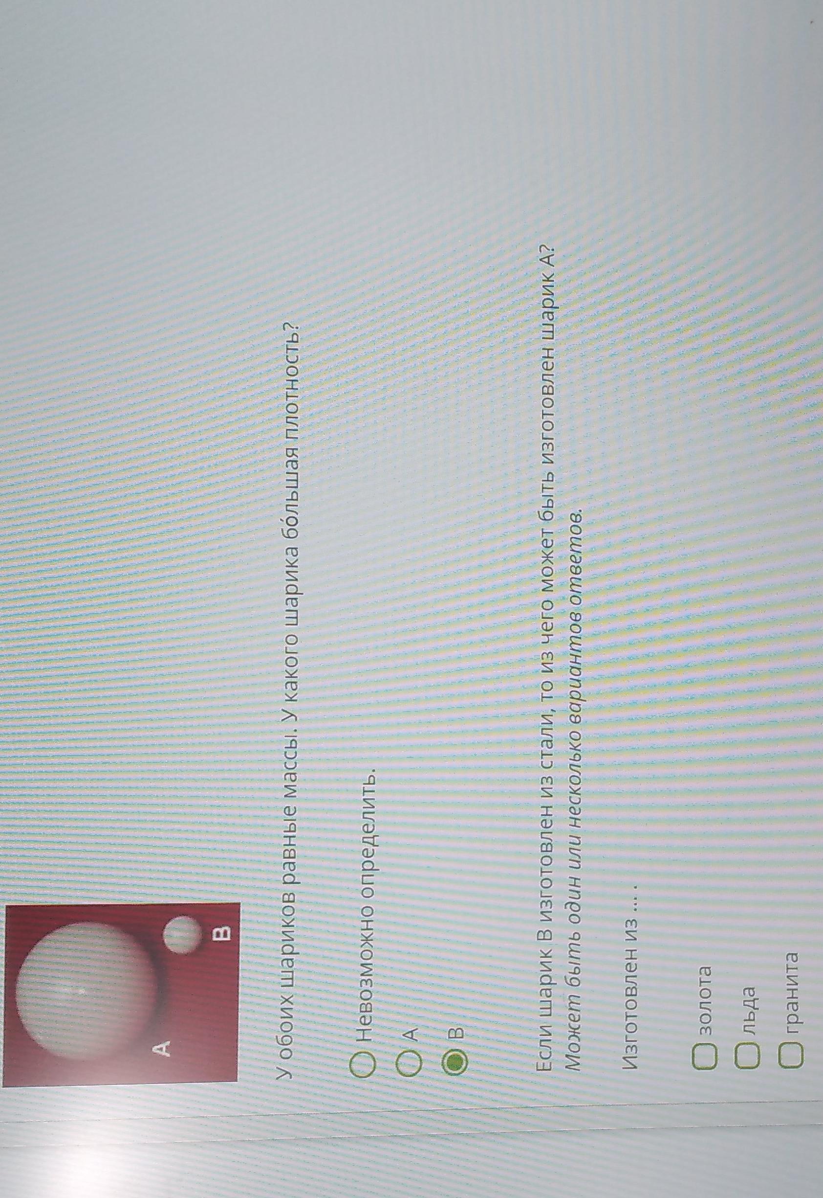 Если шарик (картинка сверху) В, изготовлен из стали, то из чего может быть изготовлен шарик А?