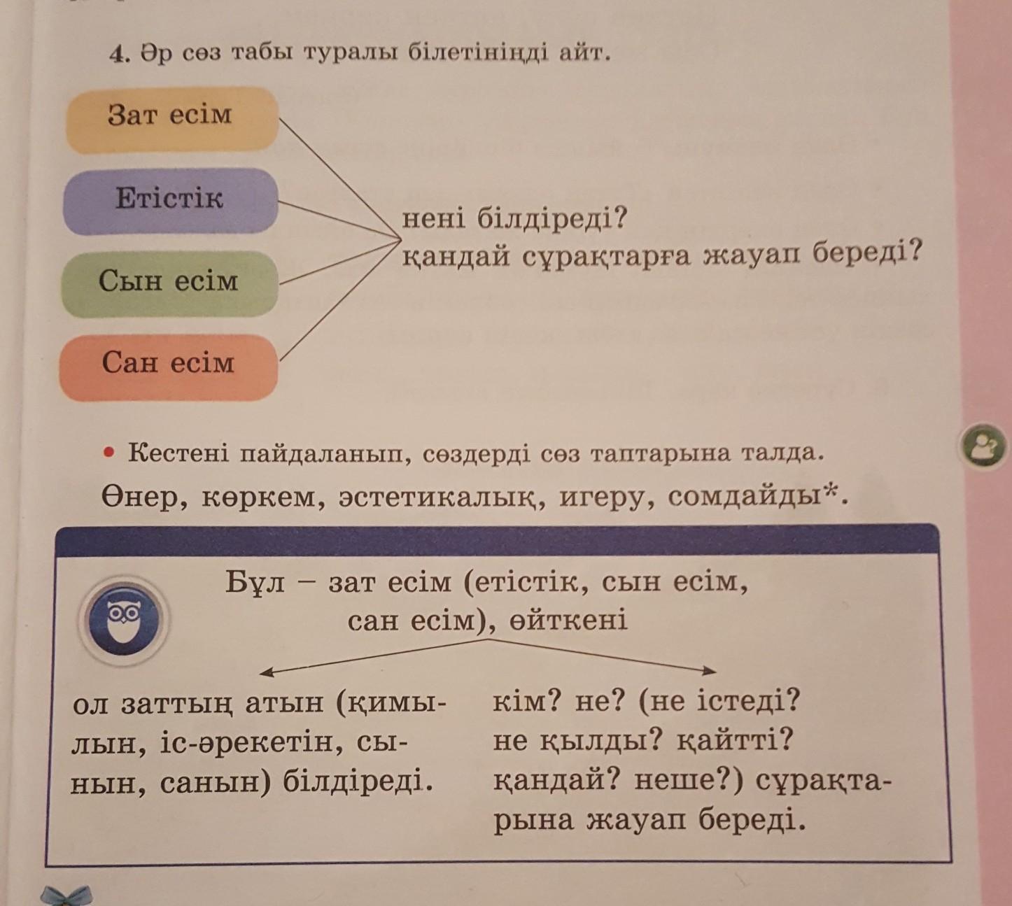 • Кестені пайдаланып, сөздерді сөз таптарына талда.