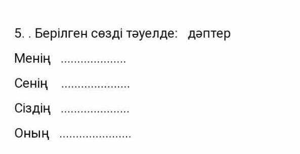 менің дəптерім сеңің дəптерің сіздің дəптеріңіз оның дəптері
