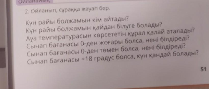 2)сіз ауа-райын теледидар бағдарламаларында немесе интернетте немесе әдетте көшеде ілулі тұрған термометр арқылы біле аласыз