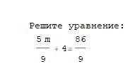 \frac{5m}{9}  + 4 =  \frac{86}{9}  \\ 5m + 36 = 86 \\ 5m = 86 - 36 \\ 5m = 50 \\ m = 10