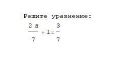 \frac{2a}{7}  + 1 =  \frac{3}{7}  \\ 7( \frac{2a}{7}  + 1) = 7 \times  \frac{3}{7}  \\  7 \times \frac{2a}{7}  + 7 = 3 \\ 2a + 7 = 3 \\ 2a = 3 - 7 \\ 2a =  - 4 \\ a =  - 2