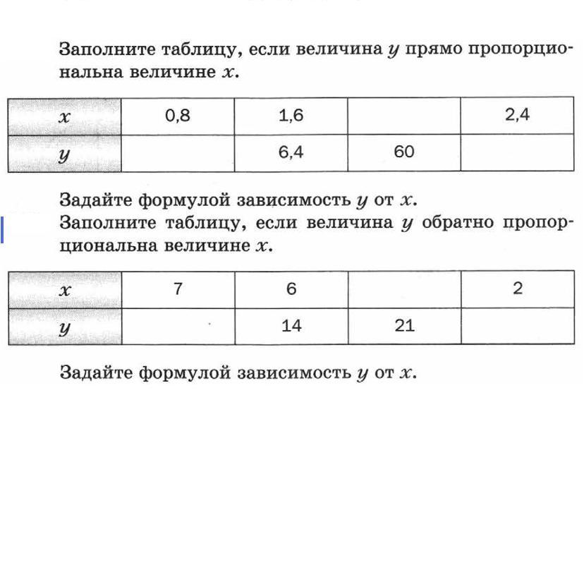 1) Величина y прямо пропорциональна величине x, т.е. y = kx. Из известного столбца таблицы найдем коэффициент k: