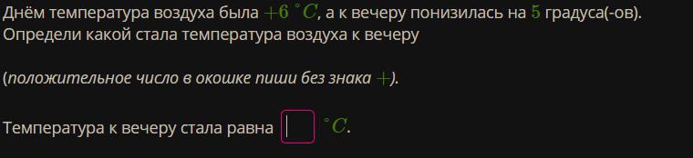 Днём температура воздуха была +6 °C, а к вечеру понизилась на 5 градуса(-ов).