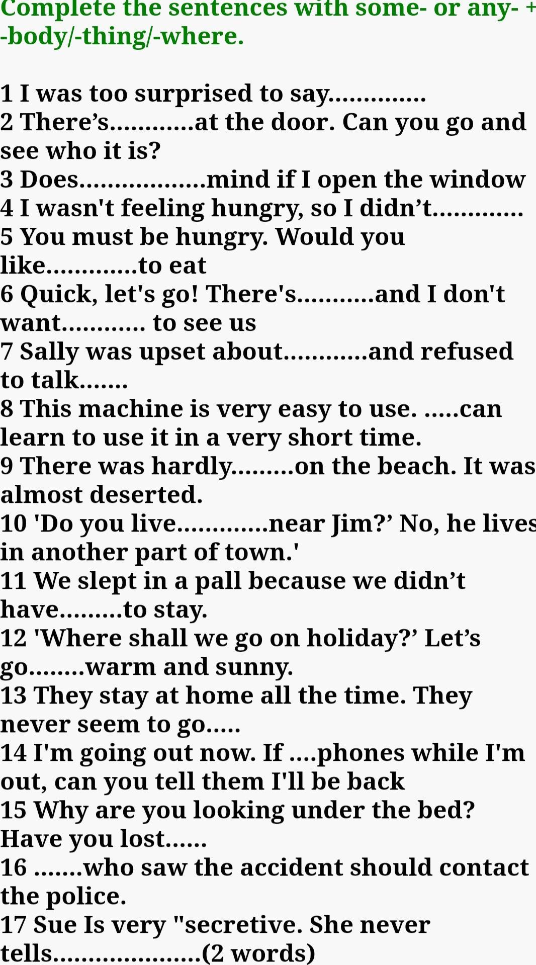 12 'Where shall we go on holiday?’ Let’s go SOMEWHERE warm and sunny.