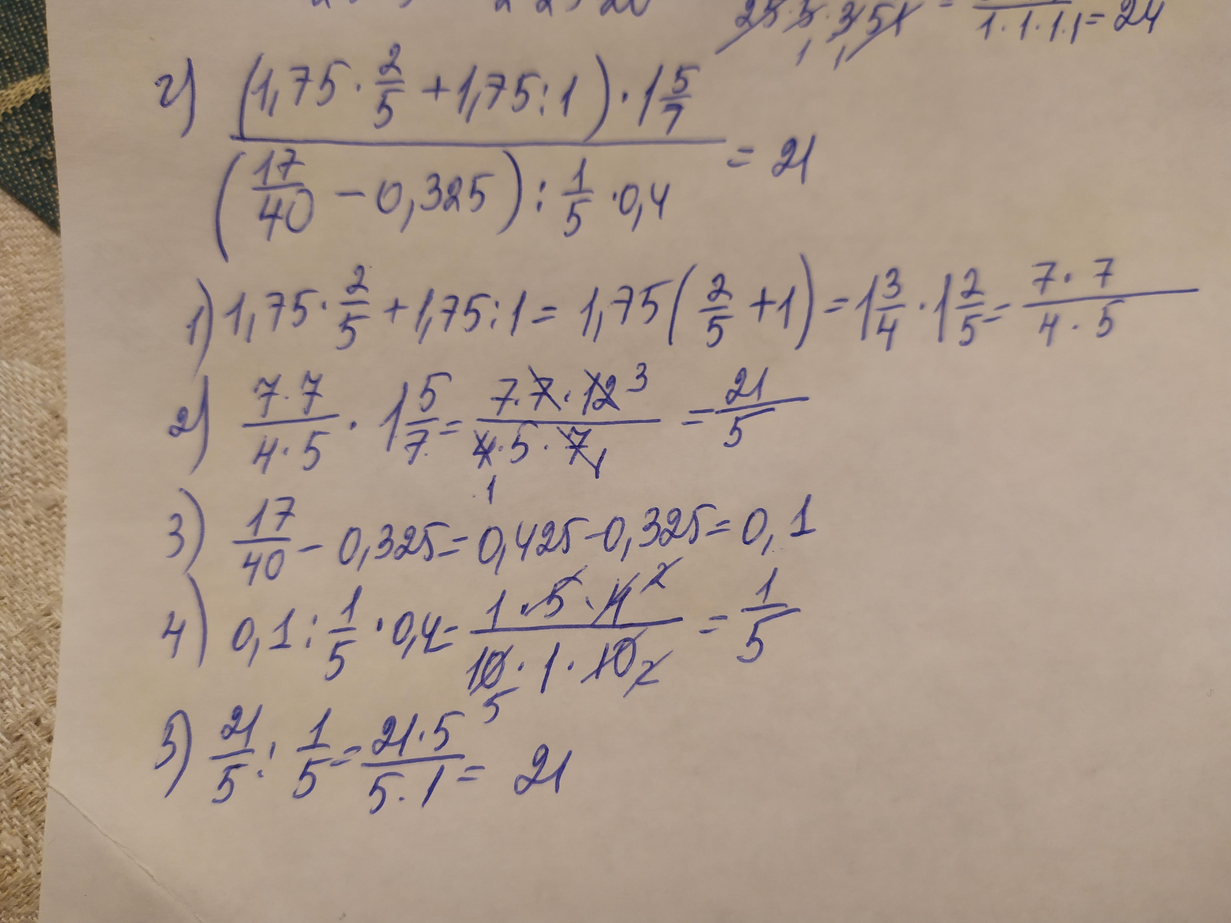 Сначала посчитай отдельно то, что сверху и то, что снизу. Потом раздели то число которое получилось вверху(числитель) на нижнее(знаменатель)