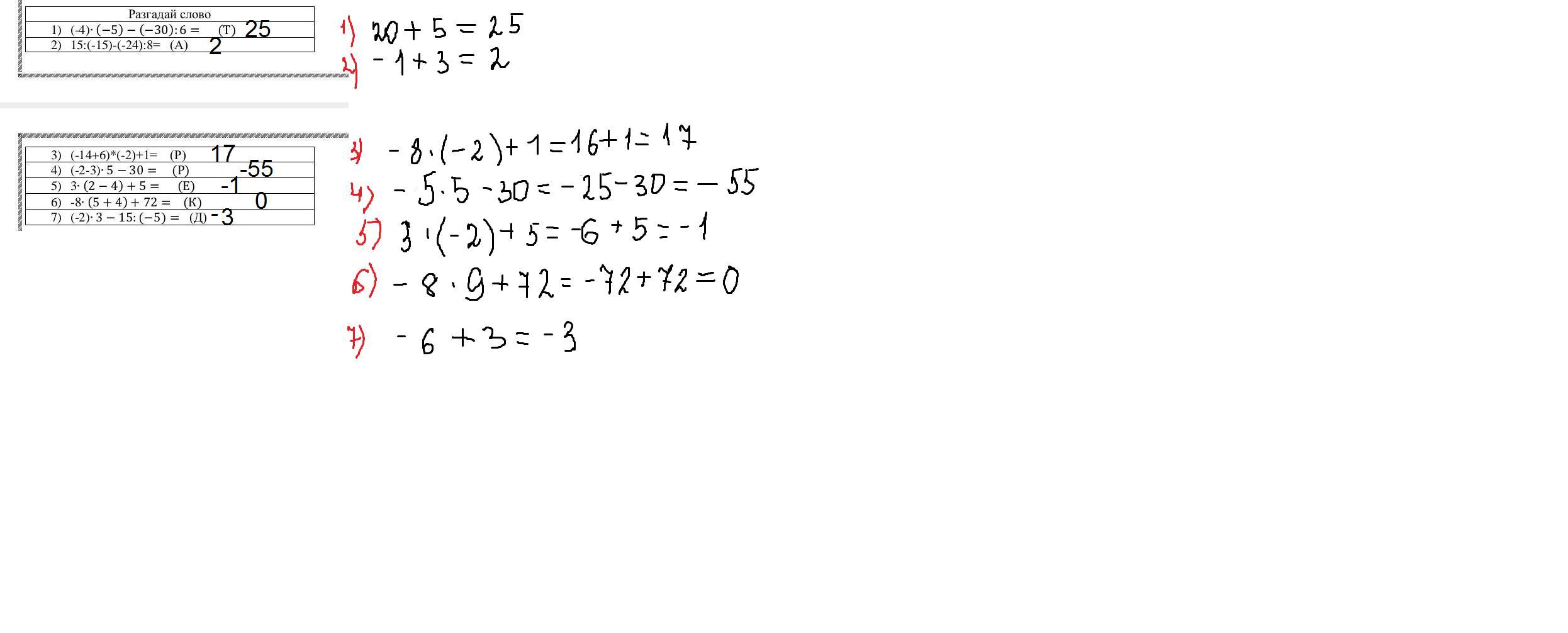 7) (-2)∙ 3 − 15: (−5) = (Д)
