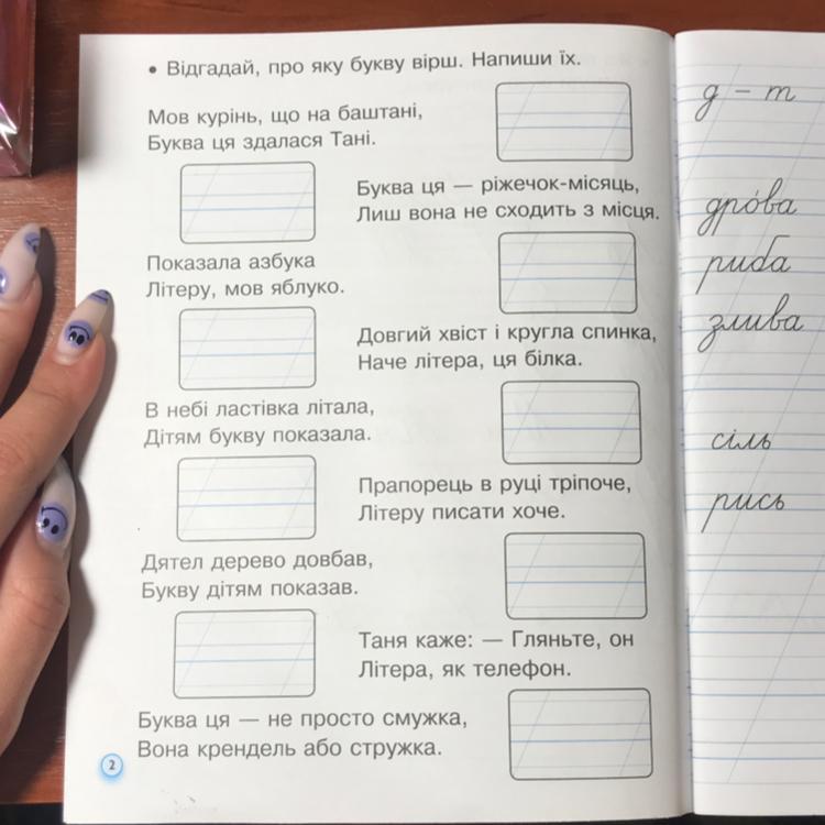 Курінь - А; як білка - б прописна маленька; місяць - С; яблуко - О.