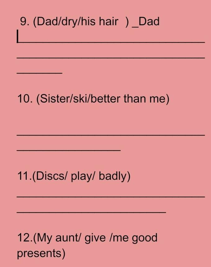 Ответ: Dad dried his car, Sister skied better than me, Discs played badly, My aunt gave me good presents.