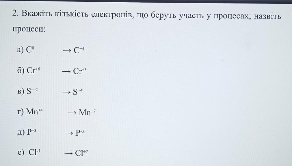 Вкажіть кількість електронів, що беруть участь у процесах; назвіть