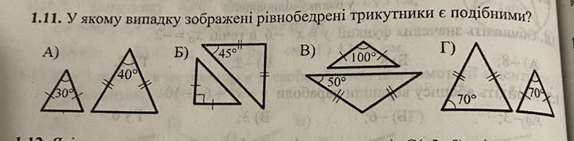 Подібними є рівнобедрені трикутники у варіанті Б)