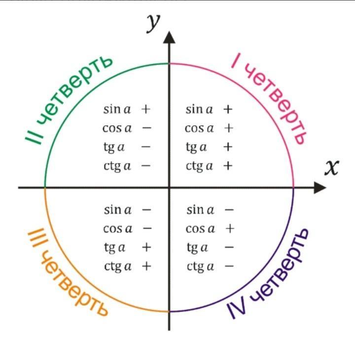 Например, для любого угла из второй четверти - синус положителен, а косинус, тангенс и котангенс отрицательны. А для любого угла из первой четверти - все четыре функции будут положительны.