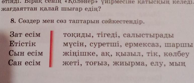8. Сөздер мен сөз таптарын сәйкестендір.