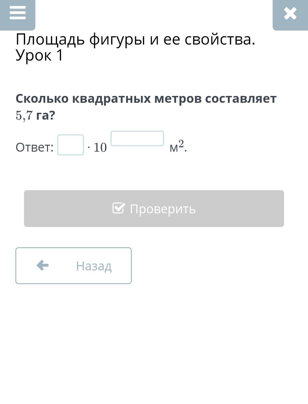 ⇒ 5,7 га = 5,7 · 10 000 = 5,7 · 10⁴ м²