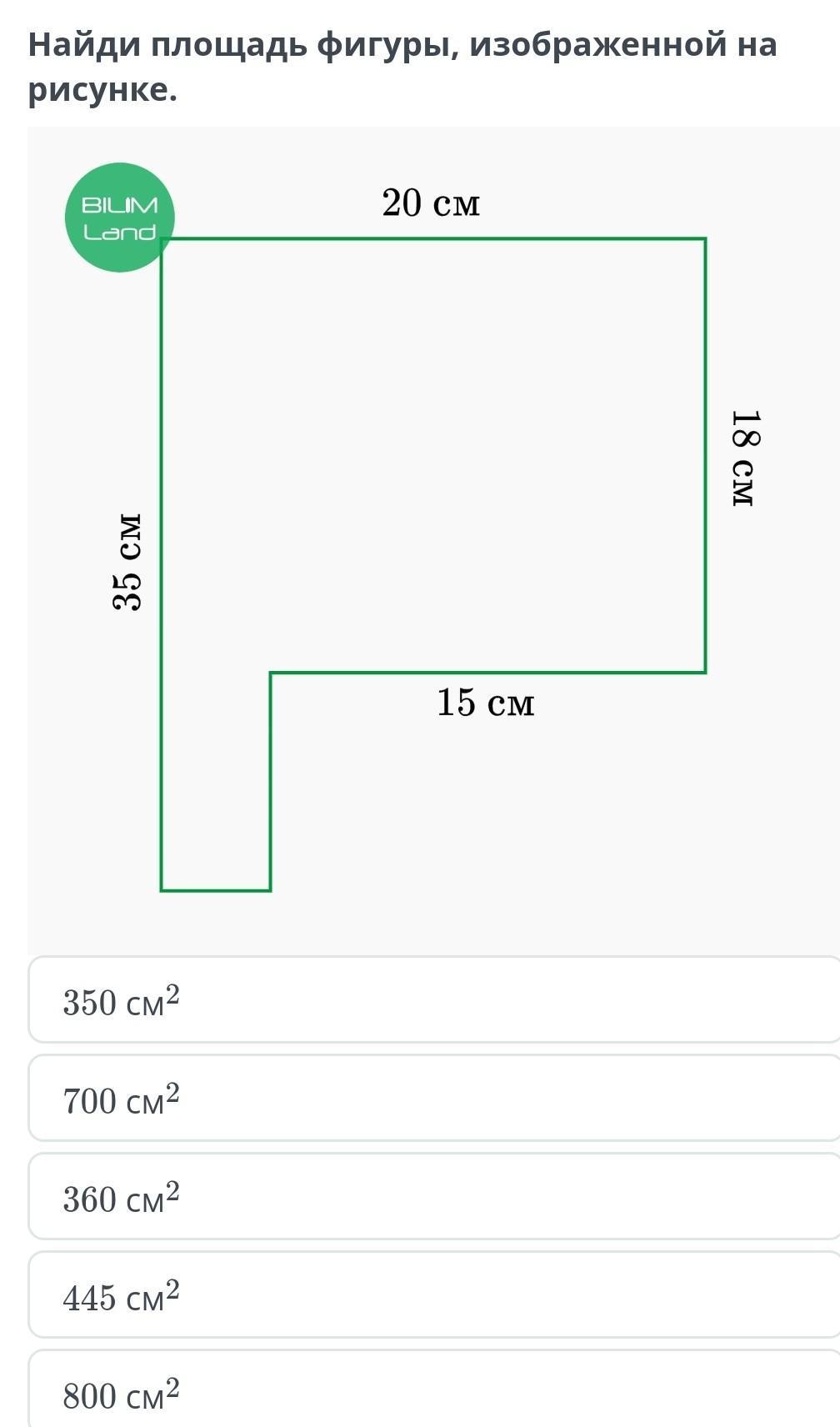 S = 35 * 20 = 700 см² - площадь достроенного прямоугольника