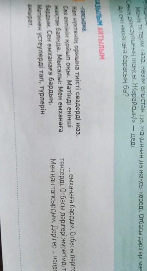 Ответ:МЕН емханаға бардым.Отбасы дәрігерді тексерді.Мен қан тапсырдым. Дәрігер маған кеңес берді