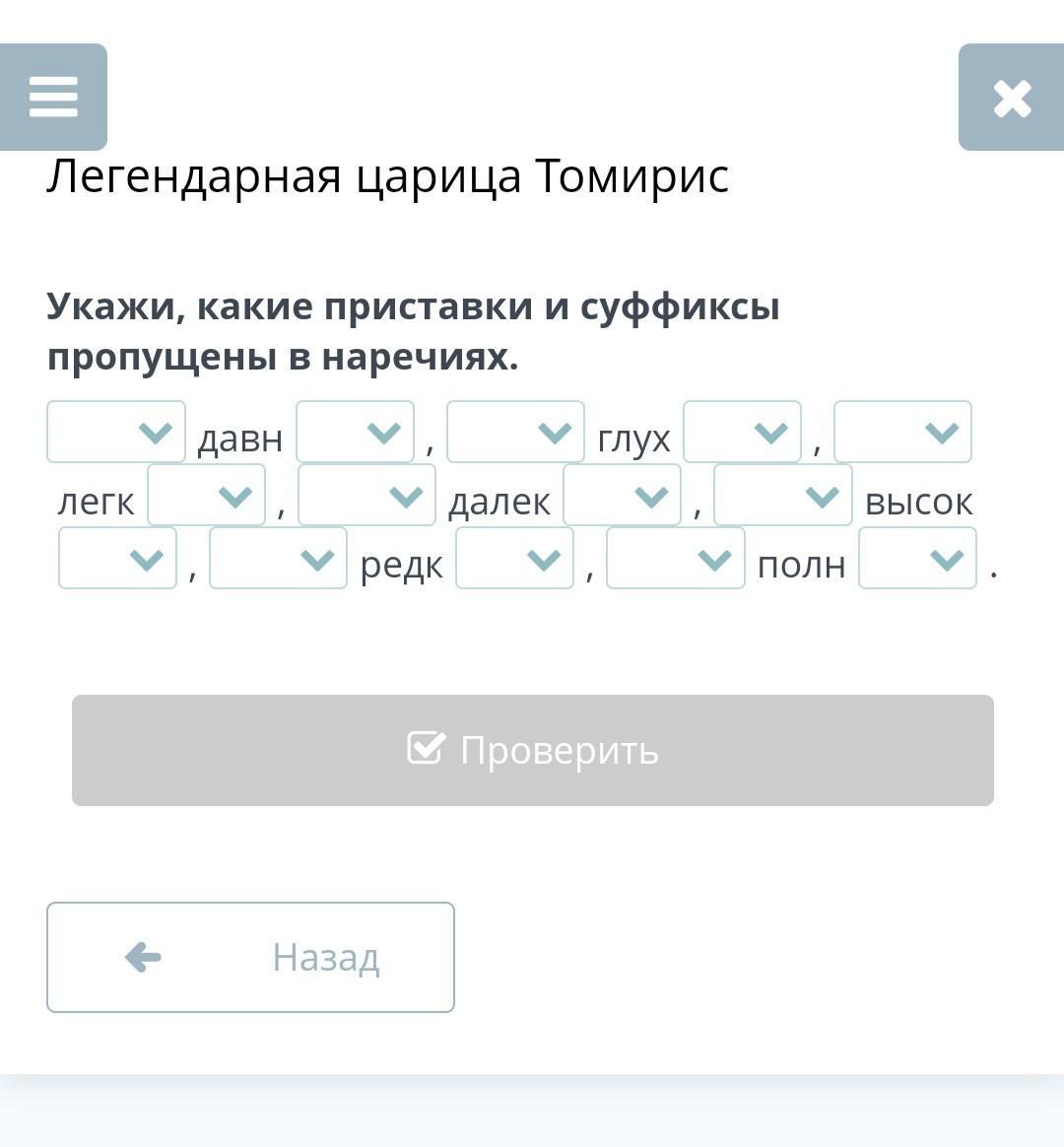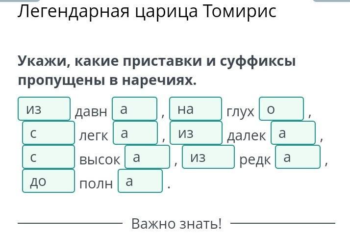 Укажи, какие приставки и суффиксы пропущены в наречиях.