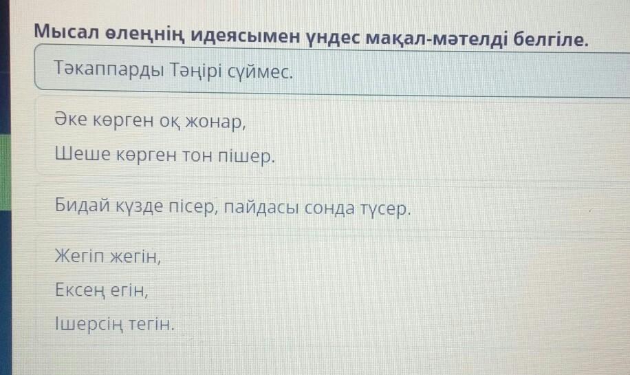 Мысал өлеңнің идеясымен үндес мақал-мәтелді белгіле.