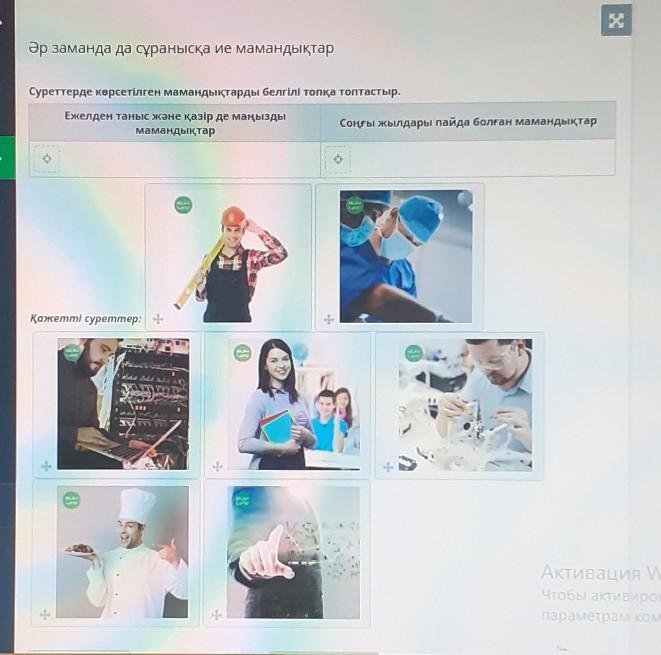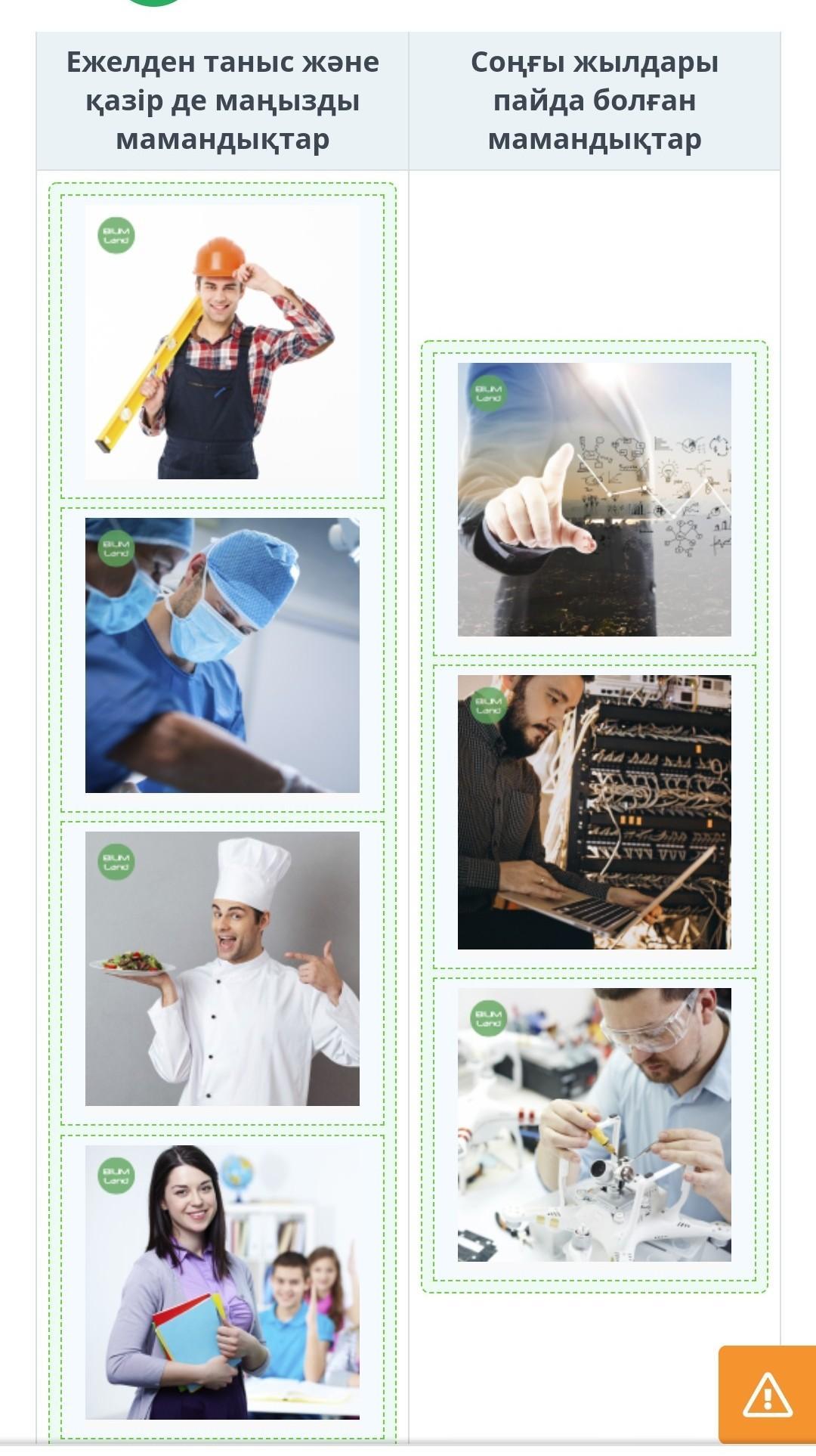 Суреттерде көрсетілген мамандықтарды белгілі топқа топтастыр.