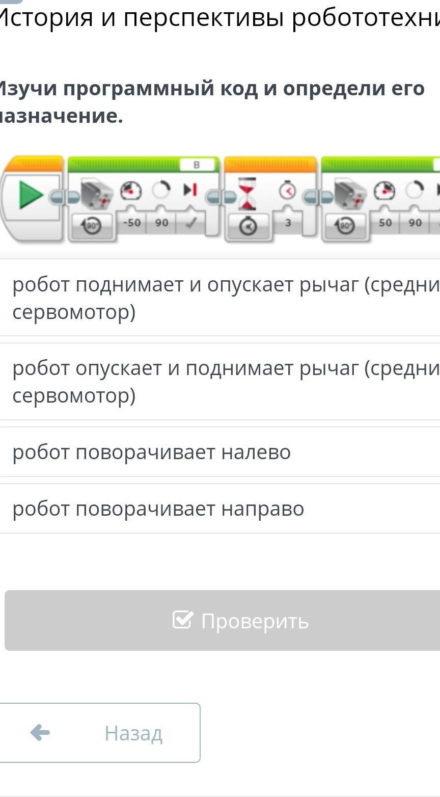 Робот опускает и поднимает рычаг (средний сервомотор)