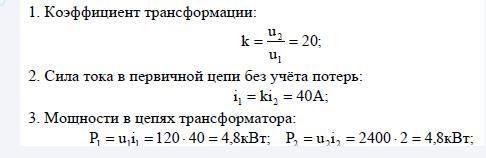Первинна обмотка підвищувального трансформатора ввімкнена в мережу змінного струму з напругою 120 В. Напруга на вторинній обмотці 2400 В, а сила струму в ній 2 А. Визначте силу струму в первинному колі СРОЧНО