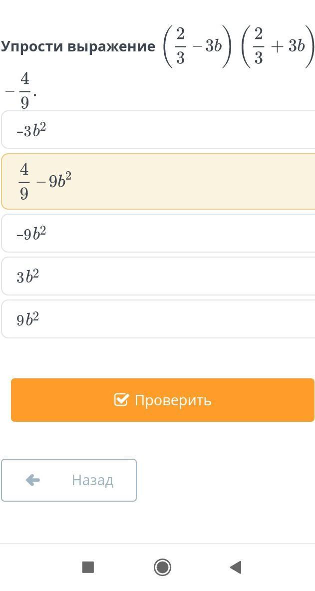 ( \frac{2}{3}  - 3b)( \frac{2}{3}   + 3b) =  \frac{4}{9}  - 9b {}^{2}