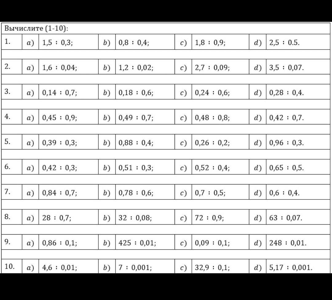 a)0.84\div0.7=1.2\\b)0.78\div0.6=2.3\\c)0.7\div0.5=1.4\\d)0.6\div0.4=1.5
