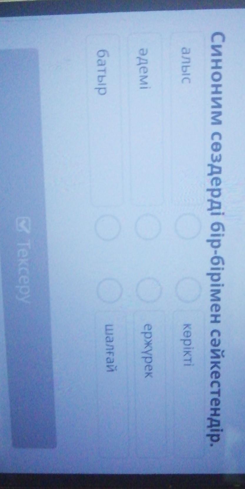 Синоним сөздерді бір-бірімен сәйкестендір.
