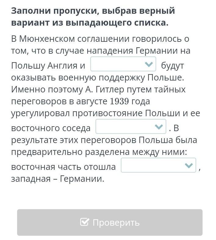 Заполни пропуски, выбрав верный вариант из выпадающего списка.