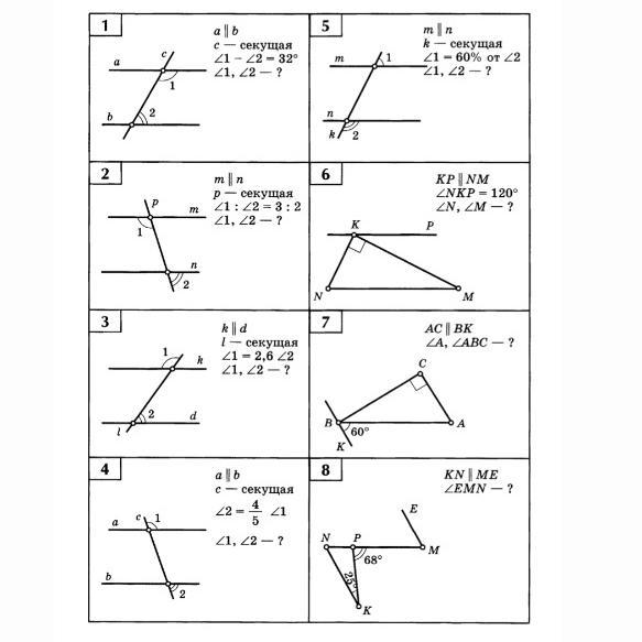 решение №1-8, показать решение, подписать название углов, показать решение. 40 баллов
