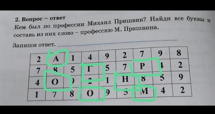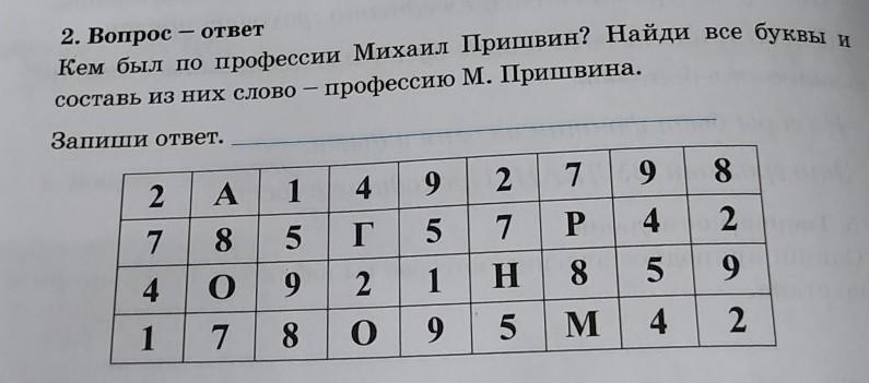 Кем был по профессии Михаил Пришвин? Найди все буквы и