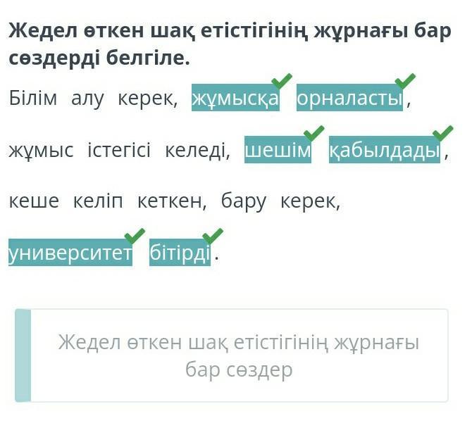 Жедел өткен шақ етістігінің жұрнағы бар сөздерді белгіле.