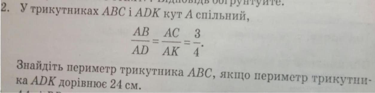 Треугольники АВС и АDK- подобные-если две стороны одного треугольника пропорциональны двум сторонам другого треугольника,и углы между сторонами равны,то такие треугольники подобны-это второй признак подобия треугольников