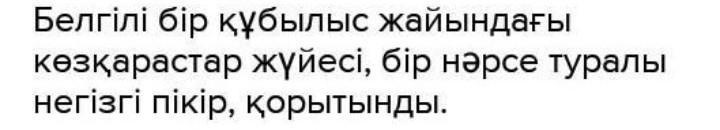 Белгілі бір құбылыс жайындағы көзқарастар жүйесі, бір нәрсе туралы негізгі пікір, қорытынды