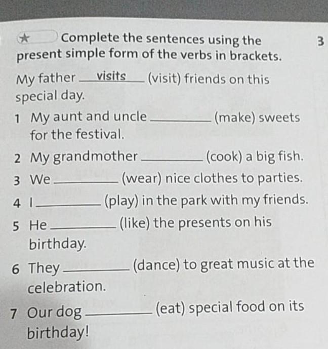 Ответ:make,cooks,wear,play,likes,dance,eats