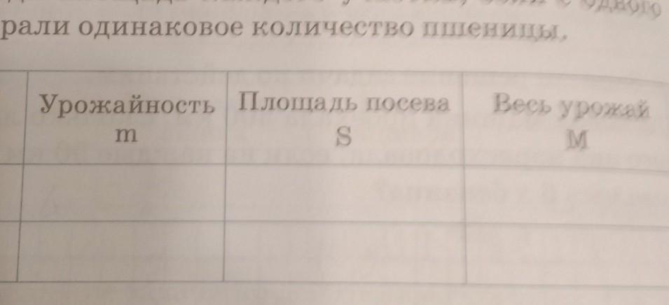 Здравствуйте! Помогите пожалуйста Нужны только условия Задача: С двух участников собрали пшеницу. Один участок больше другого на 20га, поэтому с него собрали 800ц, а с другого 640ц. Найди площадь каждого участка, если с одного гектара собрали одинаковое количество пшеницы. Условия: Урожайность,Площадь посева,Весь урожай. Заранее спасибо.