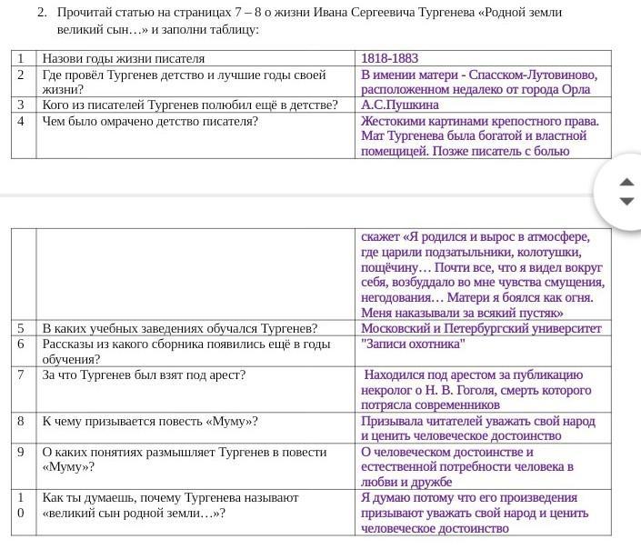 2. Прочитай статью на страницах 7 — 8 о жизни Ивана Сергеевича Тургенева «Родной земли