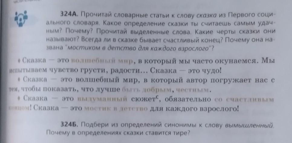 324Б. Подбери из определений синонимы к слову вымышленный