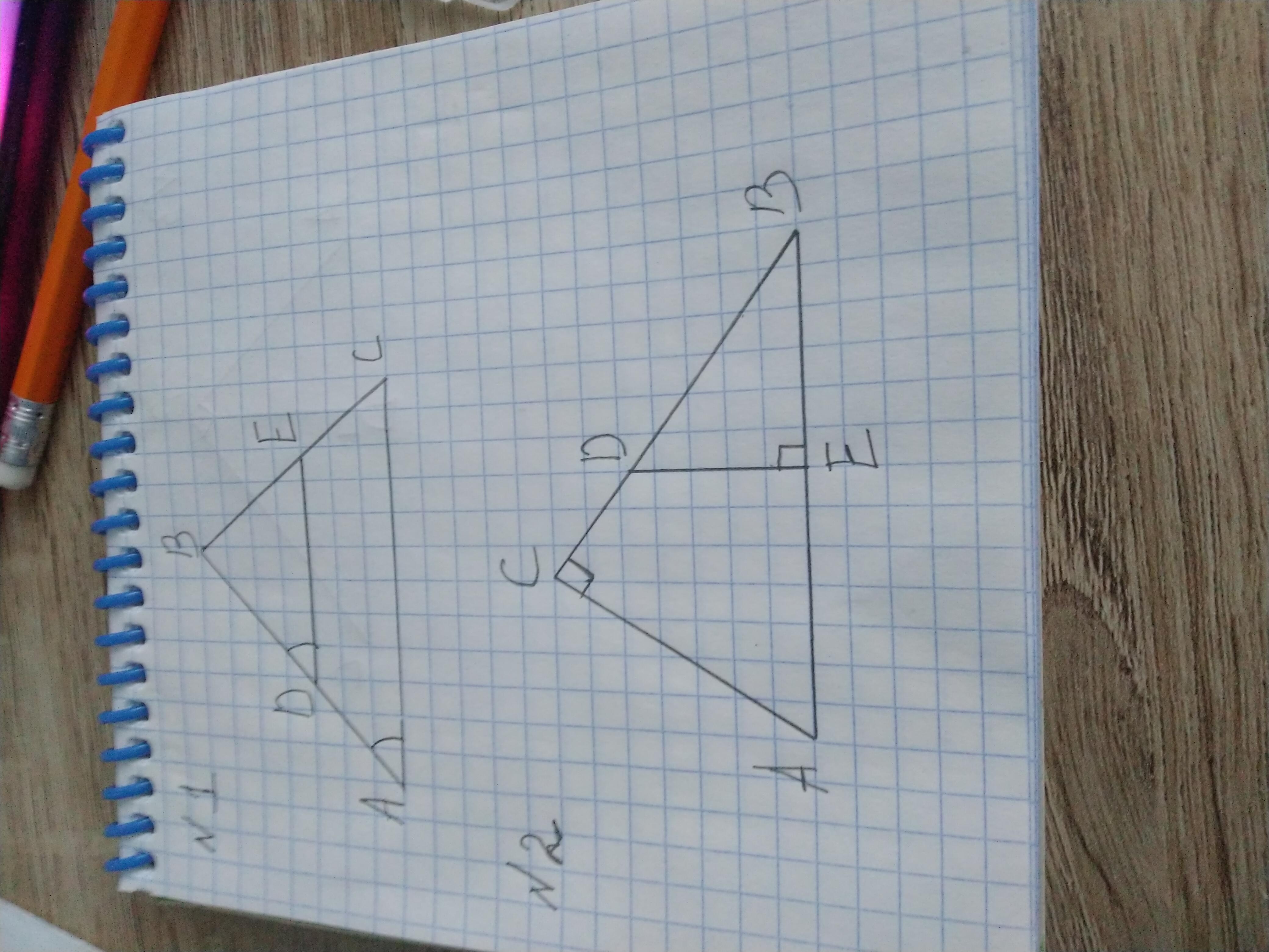 Ответ:Треугольники АВС и DBE подобные по первому признаку подобия треугольников