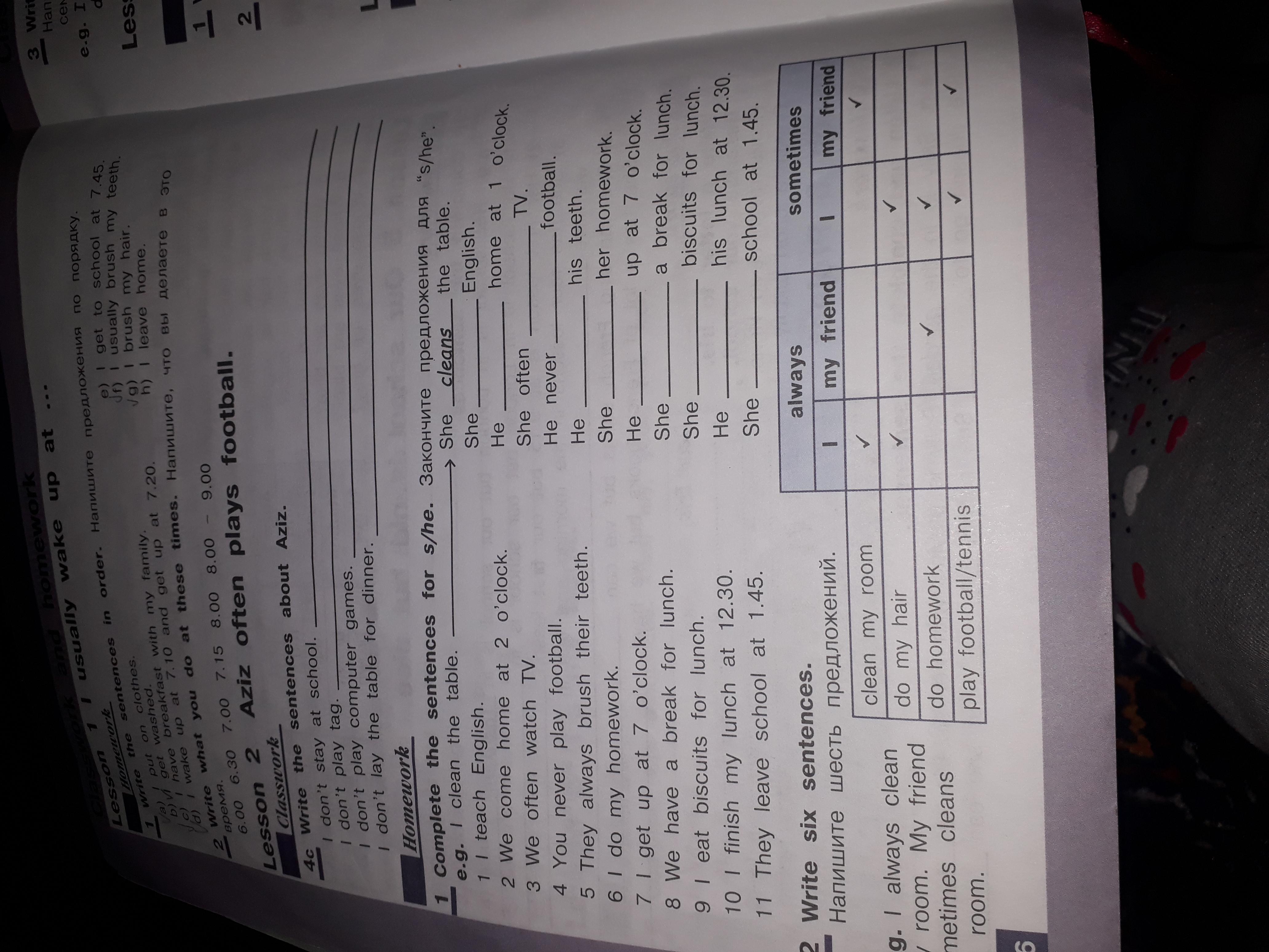 в колонке He/She нужно добавить к глаголу букву S. Предложения получатся в настоящем времени (Present Simple)