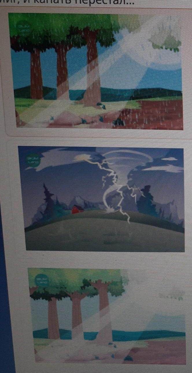 Ответ: 1 Потому что на картинке идёт маленький дождик и светит лучики солнца,а на 3 картинке дождь вообще не идёт,так что,ПЕРВАЯ