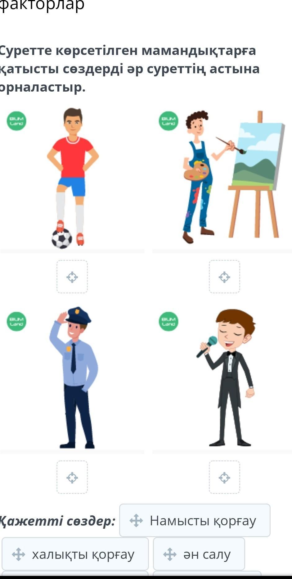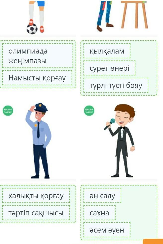 Суретте көрсетілген мамандықтарға қатысты сөздерді әр суреттің астына орналастыр.