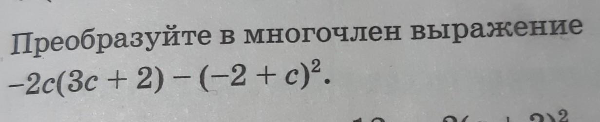-2с(3с+2)-(-2+с)^2=-6с^2-4с-(с^2-4с+4)-6с^2-4с-с^2+4с-4=-7с^2-4